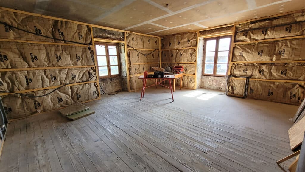 A l’étage, sept pièces (environ 155m²) sont actuellement en cours de rénovation, offrant de nombreuses possibilités d’aménagement selon vos envies et vos projets. Les combles, entièrement aménageables, constituent un espace supplémentaire idéal pour créer de nouvelles surfaces habitables.