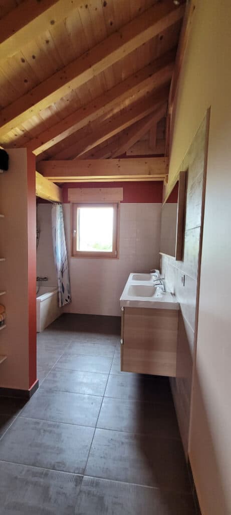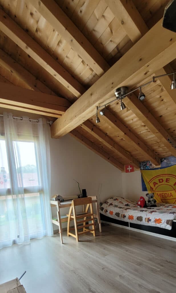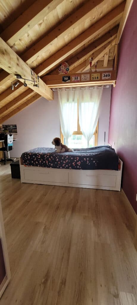 Une mezzanine ensoleillée pouvant servir d’espace bureau ou de détente, trois chambres avec rangements, une seconde salle de bains avec wc et un grenier ou dressing.